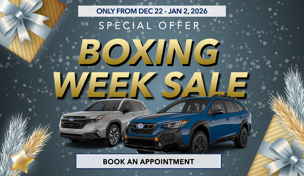 The Boxing Week Sales Event at Barrie Subaru is your chance to close out the year with exceptional savings. From December 22nd to January 2nd, 2026, enjoy limited-time offers on a carefully selected lineup of recent daily rental vehicles, all available in limited quantities and priced to move.